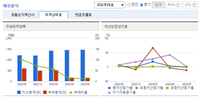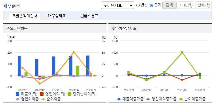 -2023년 9월 전년동기 대비 연결기준 매출액은 18.1% 증가, 영업손실은 97.7% 감소, 당기순이익 흑자전환. 해외 생산거점으로 2018년 베트남 공장을 설립하였으며, 원가절감 및 해외거래처 확보를 위해 노력하고 있음. LG계열향 매출의존도가 높아 안정성이 있으나, 성장을 위해 영업 강화 및 시제품 개발을 추진하는 등 점진적으로 신규고객사 매출비중을 증대시키고 있음.