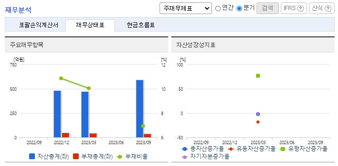 -2023년 9월 전년동기 대비 연결기준 매출액은 2.7% 감소, 영업손실은 4.2% 감소, 당기순손실은 1.4% 증가. 전분기 대비하여 매출이 약 60%이상 감소하였고, 제품 매출이 70% 이상 감소하였음. 하지만 전년 대비 인건비 비용이 감소하여 영업이익은 증가하였음. 미국, 중국 상하이, 영국, 독일 등 유럽의 일부 국가에는 직접판매 방식, 중국(상하이 제외), 나머지 유럽국가에는 간접판매 방식으로 판매함.