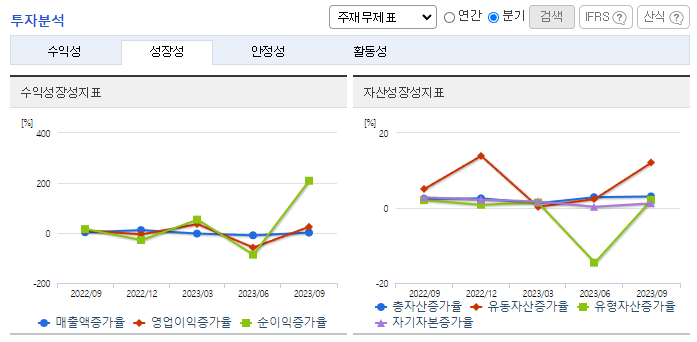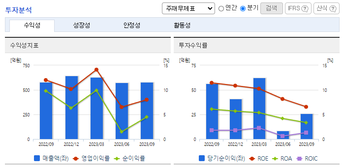 -2023년 9월 전년동기 대비 연결기준 매출액은 6.2% 증가, 영업이익은 18.8% 감소, 당기순이익은 44.8% 감소. 가성소다 및 염산 등의 판매 확대로 외형 증가세를 시현하였으나, CA 및 식품첨가재의 원재료가 상승 여파로 영업수익성 하락한 모습. 반도체 및 디스플레이 시장이 지속 성장하고 있어 전망은 긍정적임. 활용 분야가 계속 확대될 것으로 예상돼 실적 개선 가능할 것으로 기대.