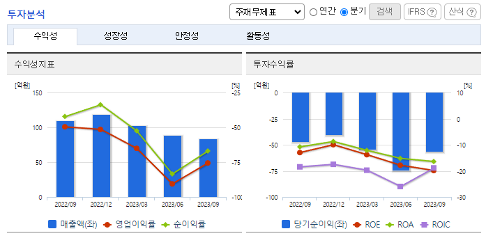 -2023년 9월 전년동기 대비 연결기준 매출액은 4% 감소, 영업손실은 79.6% 증가, 당기순손실은 117.1% 증가. 외형은 소폭 감소 되었으며, 판관비의 동반 성장으로 영업손실의 적자 폭은 확대됨. 버추얼 휴먼 사업 부문에서는 "버추얼 휴먼 빈센트"를 시작으로 "버추얼 휴먼 한 유아", "버추얼 휴먼 이솔" 등을 시장에 선보였으며 향후 인종, 성별, 체형 등 다양한 버추얼 휴먼을 시장에 선보일 예정임.