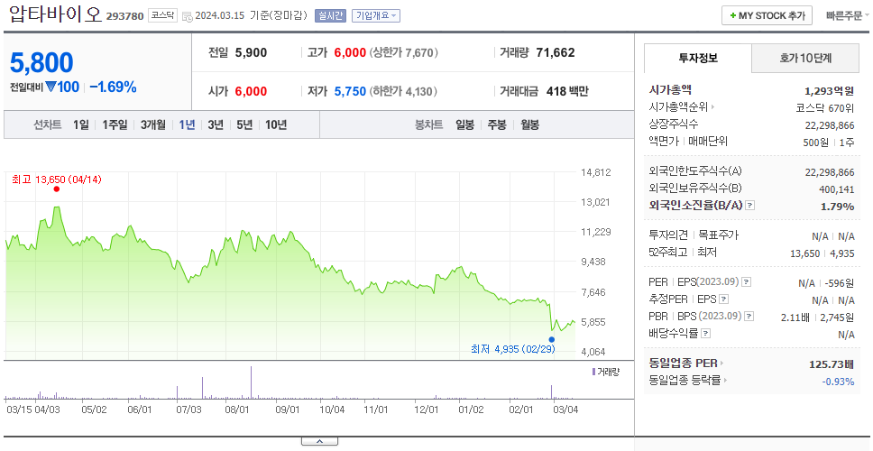 이 글에서는 압타바이오 주가 전망과 목표 주가, 기업 정보에 대해서 설명합니다. 주식 시장에서 중요한 것은 미래의 기업 가치를 예측하고 선제적으로 움직이는 것입니다. 투자할 종목을 고르기 전에 현재 기업의 현황과 데이터를 확인하는 것이 필요합니다. 압타바이오 주식의 주요 현황과 투자 정보를 확인하시고 주식 투자에 도움이 될 만한 정보들을 모아 놓았으니 투자 시 참고하시기 바랍니다..