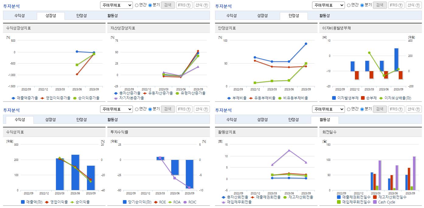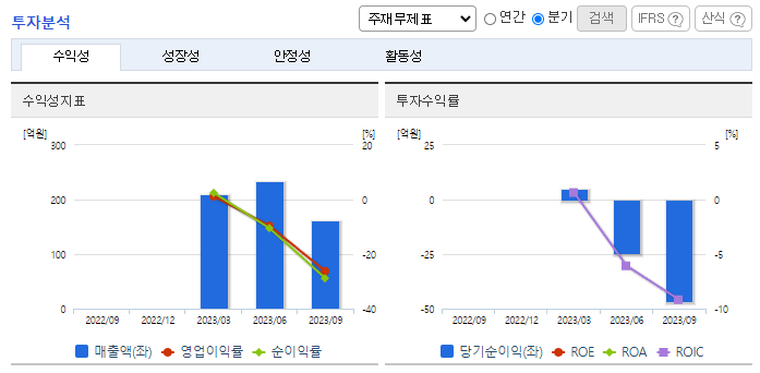 -2023년 9월 전년동기 대비 연결기준 매출액은 42.2% 증가, 영업이익 적자전환, 당기순손실은 65.3% 감소. 핵심 브랜드인 '캐치!티니핑' 관련 완구, 코스메틱, 생활잡화 매출과 용역 매출이 증가하였지만 사업 확장과 완구 유통 등에서 발생하는 비용이 커지면서 영업이익이 적자전환 됨. 키즈 애니메이션을 기반으로 연령대를 높여 원천 IP로 확장할 수 있는 다양한 콘텐츠를 지속적으로 런칭.
