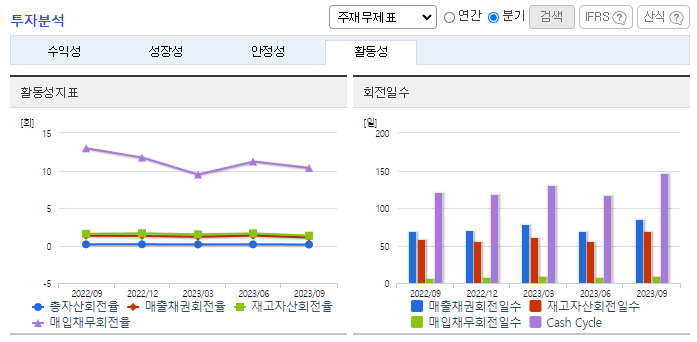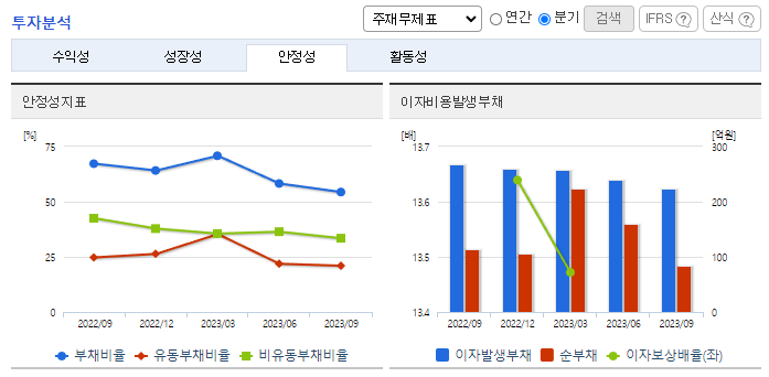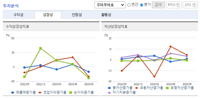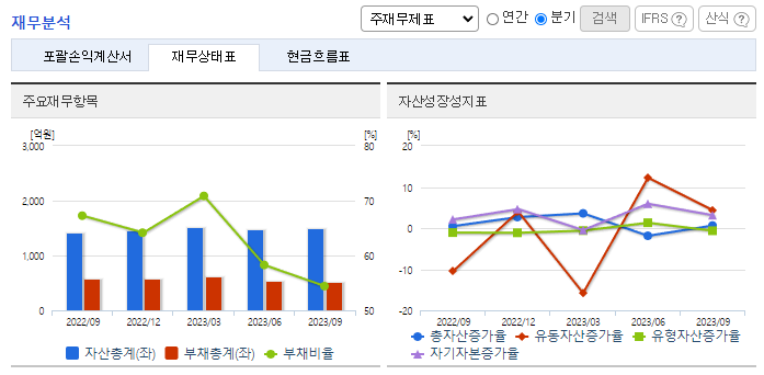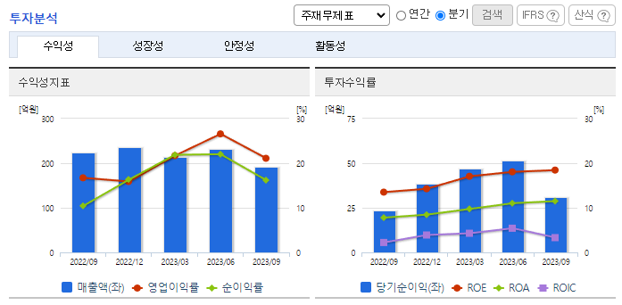 -2023년 9월 전년동기 대비 연결기준 매출액은 0.1% 감소, 영업이익은 27.9% 증가, 당기순이익은 57% 증가. 동사의 매출액이 소폭 감소하면서 매출원가와 판관비가 6.6%, 3.6% 감소하면서 수익성에 긍정적인 영향을 줌. 사업부별로 매출을 보면 골재 사업부가 3.18% 증가, 아스콘 사업부는 10.62% 증가, 레미콘 사업부는 -3.78%를 기록함.