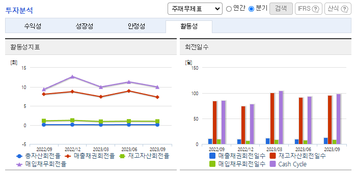-2023년 9월 전년동기 대비 연결기준 매출액은 2% 감소, 영업이익은 1.3% 증가, 당기순이익은 50.8% 감소. 변화하는 시장 상황에 대응하고자 온라인 유통 채널의 확장, 오프라인 유통 채널의 효율적인 관리 및 신제품 개발 강화를 목표로 사업을 운영하고 있음. 위기 극복을 위해 전문점 확대 및 대형화 유도, 거래처 세일행사 지원 등의 판매전략을 취하고 있음.