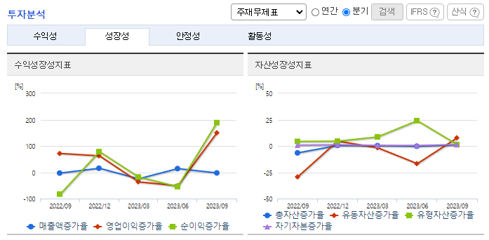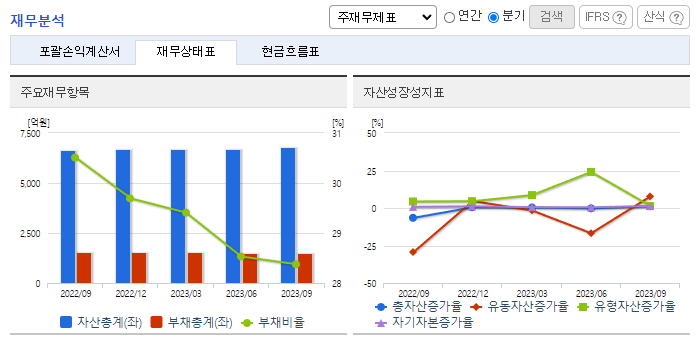 -2023년 9월 전년동기 대비 연결기준 매출액은 2% 감소, 영업이익은 1.3% 증가, 당기순이익은 50.8% 감소. 변화하는 시장 상황에 대응하고자 온라인 유통 채널의 확장, 오프라인 유통 채널의 효율적인 관리 및 신제품 개발 강화를 목표로 사업을 운영하고 있음. 위기 극복을 위해 전문점 확대 및 대형화 유도, 거래처 세일행사 지원 등의 판매전략을 취하고 있음.