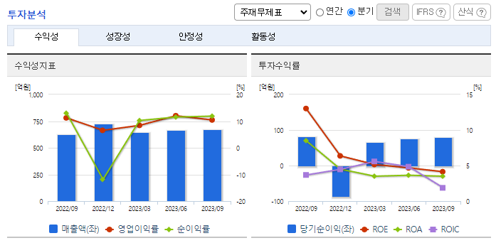 -2023년 9월 전년동기 대비 연결기준 매출액은 0.4% 증가, 영업이익은 11.4% 감소, 당기순이익은 16.6% 감소. 아날로그 제품군의 평균판매가격은 2022년 3분기 대비 하락하였으며, 네트워크 제품군과 IP카메라의 평균판매가격은 하락, VMS는 상승함. 단품의 경쟁력보다 Total solution의 경쟁력이 더욱 중요해지는 시장 변화에 대응하여, 유기적인 연결 동작을 지원하는 유용한 AI solution를 출시할 예정임.