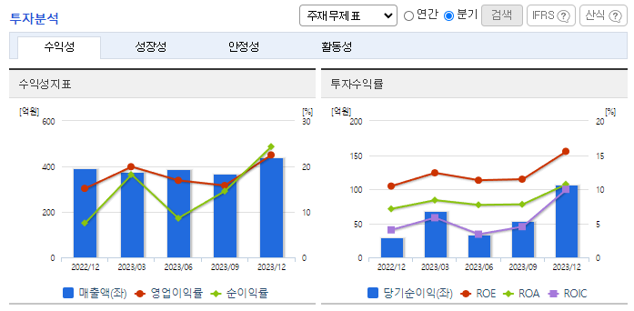 -2023년 9월 전년동기 대비 연결기준 매출액은 10.3% 증가, 영업이익은 24.1% 증가, 당기순이익은 21.6% 증가. 지난 분기 대비 매출이 소폭 감소하였으나, 주요 사업부인 약국 자동화 시스템 산업의 지속적으로 성장하고 있음. 국내 환경의 변화로 조제약국의 자동화 비중에 대한 수요가 지속적으로 증가하고 있으며, 1인 약국까지 수요가 지속적으로 증가할 것으로 예상됨.