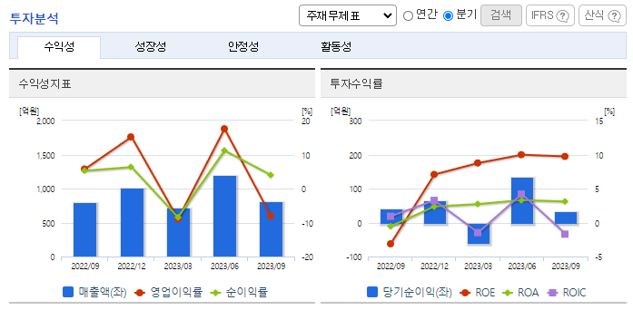 -2023년 9월 전년동기 대비 연결기준 매출액은 11.2% 감소, 영업이익은 14.7% 감소, 당기순이익은 73.1% 증가. 플랜트 내수 매출 발생이 없어지면서 매출이 전년대비 10%가량 감소하여 외형이 축소되었음. 이에 영업이익도 매출과 유사하게 감소함 2022년 하반기부터 신조선가 상승세 둔화에 중고선가는 여전히 상대적으로 높은 수치를 기록하며 신조 발주에 긍정적인 환경이 조성된 상황.