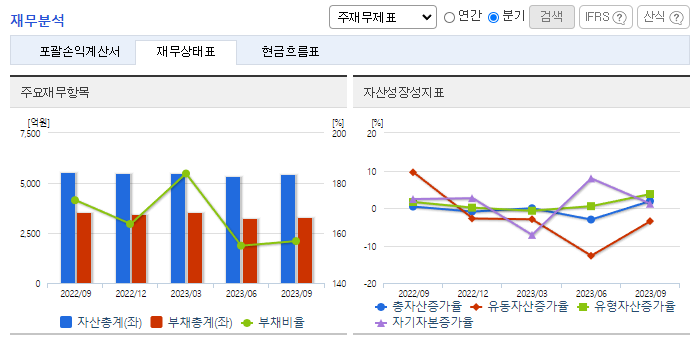 -2023년 9월 전년동기 대비 연결기준 매출액은 11.2% 감소, 영업이익은 14.7% 감소, 당기순이익은 73.1% 증가. 플랜트 내수 매출 발생이 없어지면서 매출이 전년대비 10%가량 감소하여 외형이 축소되었음. 이에 영업이익도 매출과 유사하게 감소함 2022년 하반기부터 신조선가 상승세 둔화에 중고선가는 여전히 상대적으로 높은 수치를 기록하며 신조 발주에 긍정적인 환경이 조성된 상황.
