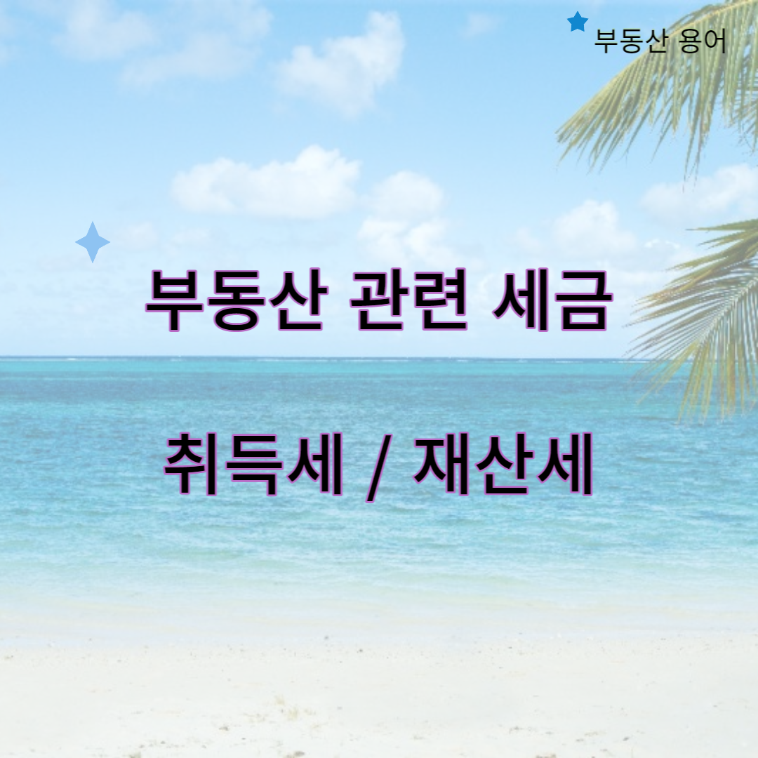 부동산 관련 세금에는 크게 4종류가 있다. 관련하여 이번 포스팅에서는 취득세와 재산세를 다루고, 다음 포스팅에서