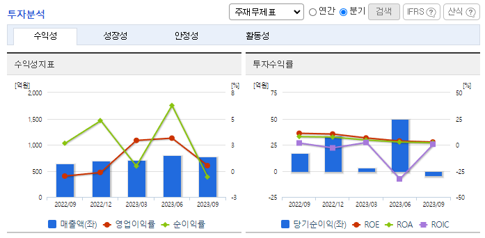 -2023년 9월 전년동기 대비 연결기준 매출액은 22.5% 증가, 영업이익 흑자전환, 당기순이익은 80.3% 감소. 자동차 사업부 매출이 크게 성장하며 전체적인 외형 성장을 유지하고 있음. 원가율 상승에도 외형 성장으로 영업이익은 흑자로 전환됨. 자동차 사업부문은 MK 소형 SUV(9 BYC MCM) 액세서리 3종 금형 수주 및 개발하는 등 꾸준한 연구개발을 해오고 있음.