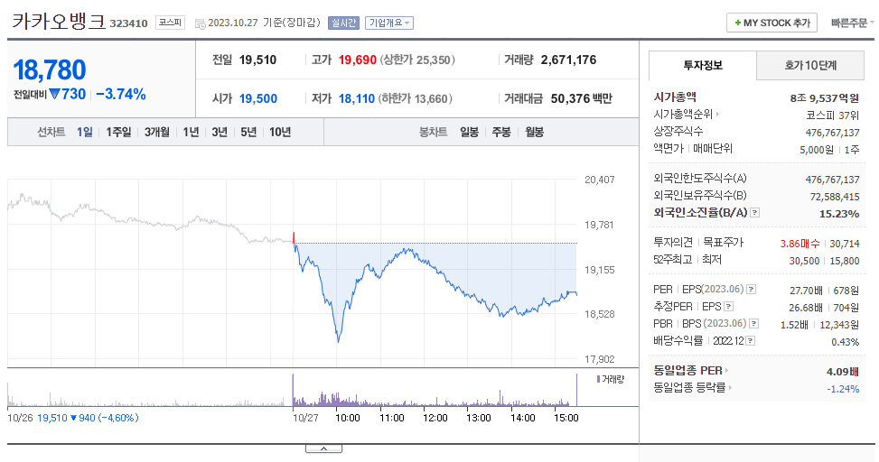 이 글에서는 카카오뱅크 주가 전망과 목표 주가, 기업 정보에 대해서 설명합니다. 주식 시장에서 중요한 것은 미래의 기업 가치를 예측하고 선제적으로 움직이는 것입니다. 투자 대상을 선택하기 전에 현재 기업의 현황과 데이터를 확인하는 것이 필요합니다. 카카오뱅크 주식의 주요 현황과 투자 정보를 확인하시고 주식 투자에 도움을 줄 자료들을 모아두었으니 참고하여 효율적인 투자를 해보세요..