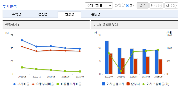 -2023년 9월 전년동기 대비 연결기준 매출액은 1.1% 감소, 영업이익은 30.3% 증가, 당기순이익은 37.4% 증가. 2분기 이후 매출 상승세가 둔화되면서 전년동기 수준을 소폭 하회하는 매출 기록하였으나, 원자재 가격의 하락 영향으로 영업수익성은 비교적 큰 폭의 상승세를 시현함. 플라스틱 산업의 긍정적 전망과 함께 꾸준한 매출활동 및 대체품 개발 등으로 지속적으로 성장할 것으로 기대함.