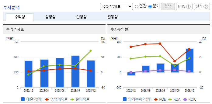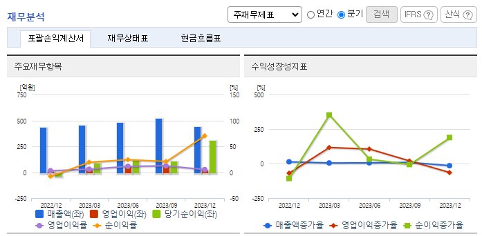 -2023년 9월 전년동기 대비 연결기준 매출액은 37.8% 증가, 영업이익은 83.2% 증가, 당기순이익은 36.5% 감소. 자동차용 반도체 매출 증가로 전년 동기 대비 37.8% 증가한 매출액을 달성하였으며, 당기순이익은 전년 동기에 칩스앤미디어보유 지분 매각으로 인한 효과가 반영되어 감소하였음. 매출극대화를 위하여 Car Audio/AVN 제품 라인업 추가와 중국, 일본 등의 해외시장 공략을 진행 중임.