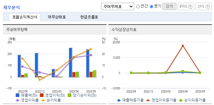 -2023년 9월 전년동기 대비 별도기준 매출액은 6.7% 증가, 영업이익은 11.4% 증가, 당기순이익은 23.3% 증가. 동사가 보유한 레이저 커팅 기술 수요가 급증함에 따라 레이저 커팅 장비의 매출 성장세가 두드러지고 있는 추세임. 차세대 디스플레이로 부각되는 마이크로 LED 제조 공정에 필요한 레이저 리페어 장비도 공급하고 있으며, 향후 차세대 디스플레이 시장의 확대가 예상됨에 따라 레이저 리페어 장비의 매출이 기대됨.