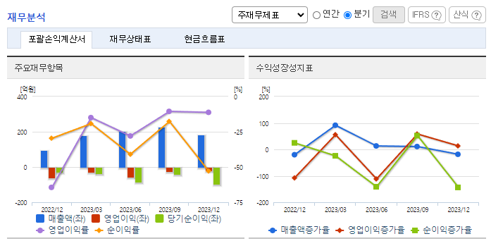 -2023년 9월 전년동기 대비 연결기준 매출액은 74.7% 증가, 영업손실은 25.4% 증가, 당기순손실은 38.4% 증가. 캔 콤부차는 기존의 Bottle/PET 콤부차와 더불어 보다 폭넓은 소비자를 공략해 콤부차 시장 및 매출이 확대될 것으로 예상. 2023년 7월 미디어커머스 자회사 '티아이코퍼레이션' 합병으로 미디어커머스·리테일을 주축으로 하는 사업 포트폴리오를 완성하였으며 시너지를 기반으로 사업 경쟁력 강화가 기대됨.