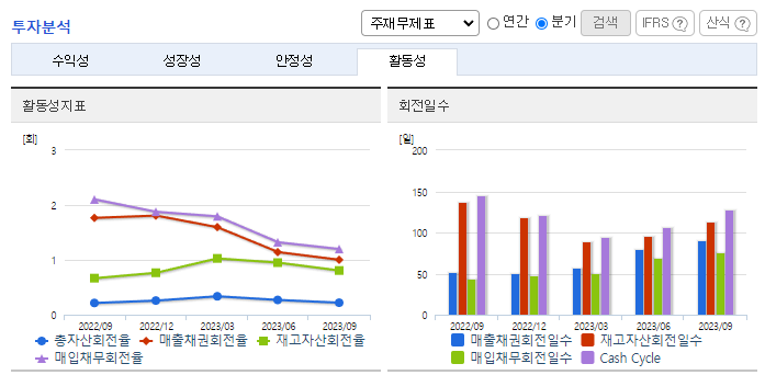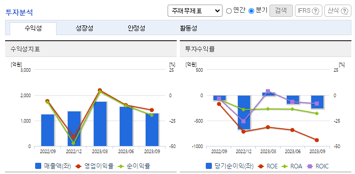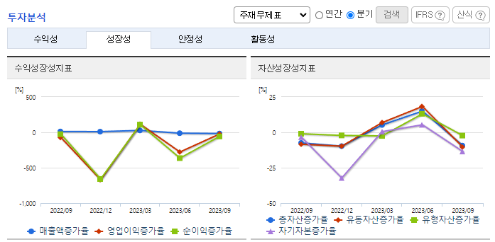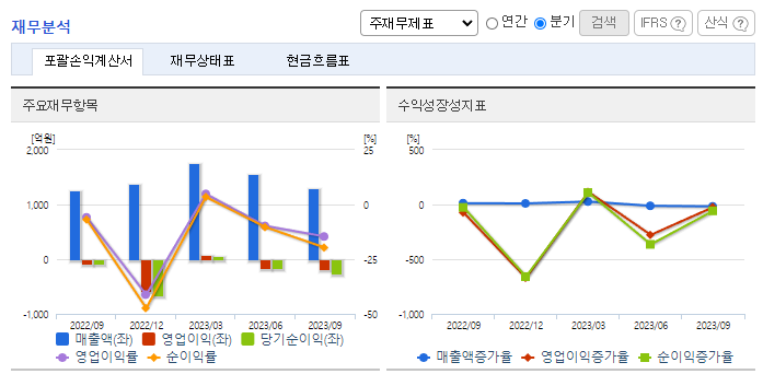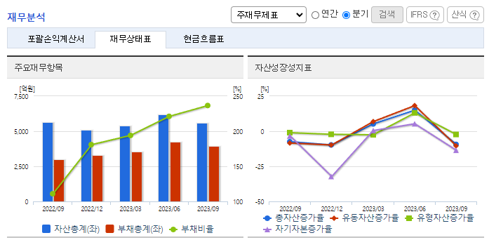 -2023년 9월 전년동기 대비 연결기준 매출액은 42.3% 증가, 영업손실은 348.1% 증가, 당기순손실은 367.7% 증가. 국내사업부문 매출이 42.97%, 스틸사업부문 매출이 15.7% 증가하는 등 매출이 크게 증가하였으나 수익성은 크게 감소하였음. 선별적 프로젝트에 대해서는 시공참여를 목적으로 하는 출자 및 대여 등 신규수주를 위해 회사자원을 집중해 나갈 계획임.