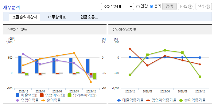 -2023년 9월 전년동기 대비 연결기준 매출액은 11.7% 감소, 영업손실은 58.2% 증가, 당기순이익 흑자전환. EMC, 안테나, 모터 등은 전방산업 부진으로 매출이 감소했으나 개발품, 금형 등 기타 사업은 성장했음. 외형 축소에 따른 고정비 부담 증가로 영업손실 규모가 증가함. 해외 영업력을 강화하기 위해 미주, 일본, 중국, 대만, 유럽 등에 지사 또는 사무소를 두고 있으며, 시장조사 및 고객 밀착 영업 등을 진행하고 있음.