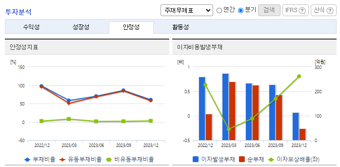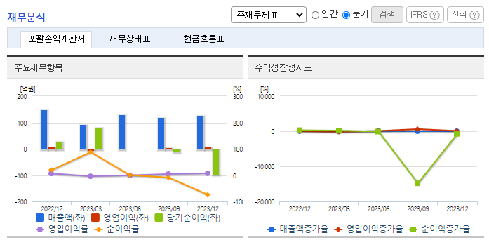 -2023년 9월 전년동기 대비 별도기준 매출액은 5.1% 증가, 영업이익 적자전환, 당기순이익 흑자전환. 전 사업부문의 고른 성장세로 외형은 확대됨. 고정비 부담 증가로 영업이익은 적자로 돌아섬. 반면 관계기업투자손상차손 및 연결제거손실의 비용이 제거됨에 따라 순이익은 흑자로 전환됨. 기존의 상용차 부품사업에 대한 자체개발투자를 활성화하여 매출 다각화와 적극적인 영업활동을 위해 노력 중임.