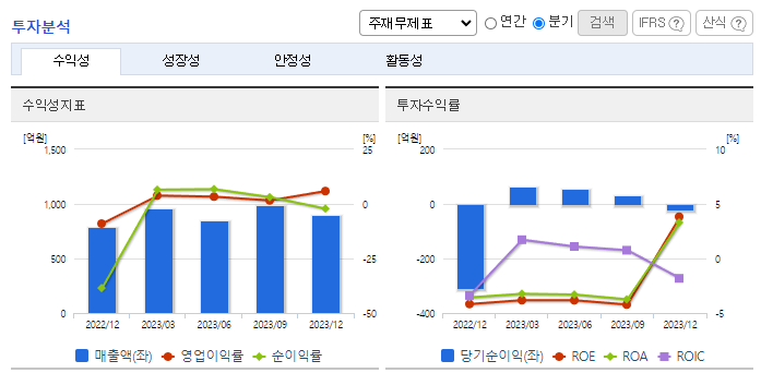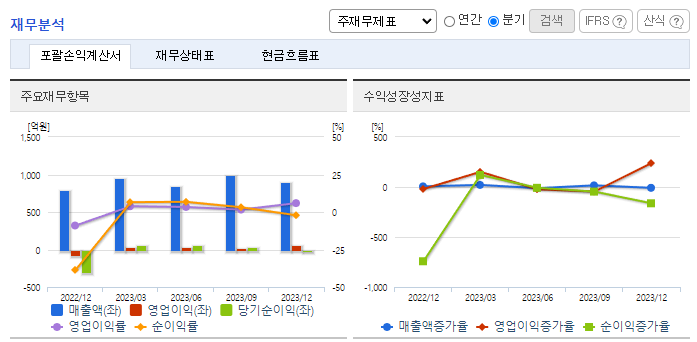 -2023년 9월 전년동기 대비 연결기준 매출액은 4.8% 증가, 영업이익 흑자전환, 당기순이익은 4.2% 감소. 매출은 전년동기 대비 소폭 증가했으나 원가율이 획기적으로 줄어들면서 영업이익은 큰 폭으로 증가함. 미용 및 치료용 초음파 제품의 경우 국내 메이저 미용기기 제조기업과 계약하고 2023년부터 양산 공급을 시작하였으며 제품군과 고객 확대를 추진하고 있음.
