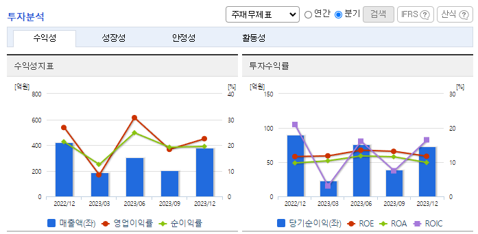 -2023년 9월 전년동기 대비 연결기준 매출액은 16.7% 증가, 영업이익은 37% 증가, 당기순이익은 32.3% 증가. 소프트웨어 및 하드웨어 기술노하우로 여타 네트워크제품과는 차별화된 가격정책을 유지해가고 있으며 제조 원가나 생산 설비에 대한 투자의 비중이 상대적으로 낮음. 고객 특성상 예산의 집행시기 등이 4분기에 많이 몰려 있기에 매출 및 영업이익 등이 1분기가 가장 적고, 4분기 비중이 가장 높음.