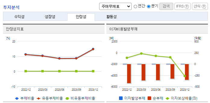-2023년 9월 전년동기 대비 별도기준 매출액은 31.8% 감소, 영업손실은 1122.8% 증가, 당기순이익 적자전환. 동사는 주가안정 및 주주가치 제고를 위해 36억 원의 주식취득 신탁계약을 체결하였으며, 주주가치 제고를 위해 가장 많이 사용되는 자사주 소각 계획은 없는 것으로 파악됨. 감사인 ‘의견거절’로 매매가 정지된 상태이며 거래정지 주식도 장외거래는 가능하나 22%의 양도세를 지불해야 하는 것으로 파악되고 있음.