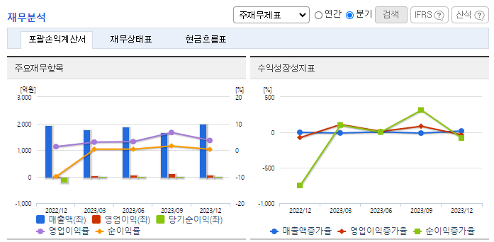 -2023년 9월 전년동기 대비 연결기준 매출액은 14.9% 감소, 영업이익은 10.7% 감소, 당기순이익은 72.3% 감소. 매출 감소에 따른 매출원가와 판관비가 14.7%, 23.9% 감소로 비용 부담은 줄었지만 매출 감소폭이 커 영업이익이 감소함. 전반적으로 모든 매출부문이 감소했지만 LS-VINA Cable 관련 매출이 -12.10% 기록하며 전체 외형 성장에 부담을 줌.